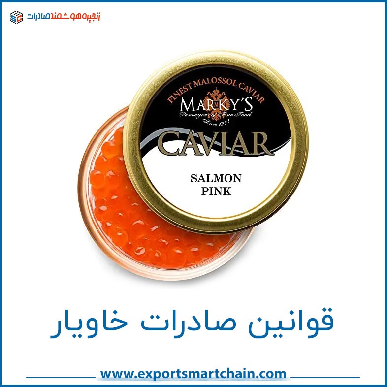 صادرات خاویار، علاوه بر قوانین و مقررات عمومی صادرات، نیاز به رعایت قوانین خاصی دارد. در ایران، برخی از قوانین و مقررات صادرات خاویار عبارتند از: