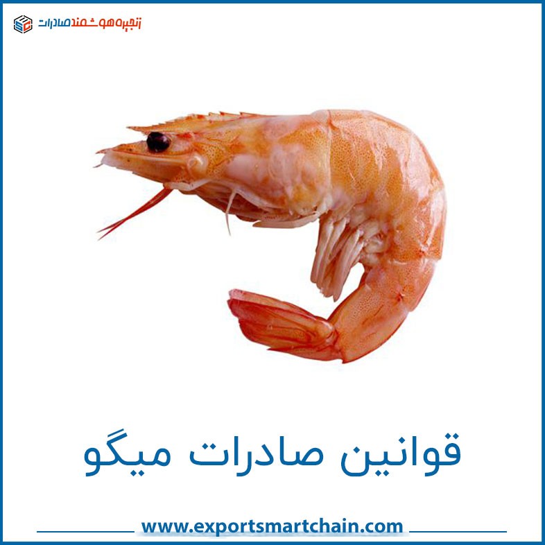 مجوز صادرات: برای صادرات میگو، صادرکننده نیاز به دریافت مجوز صادرات از سازمان صنایع شیلات و آبزیان یا سازمان توسعه تجارت خارجی ایران دارد.